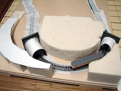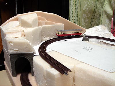 山岳部分の土台はスタイロフォームの切れっ端などで適当に積み上げてます。