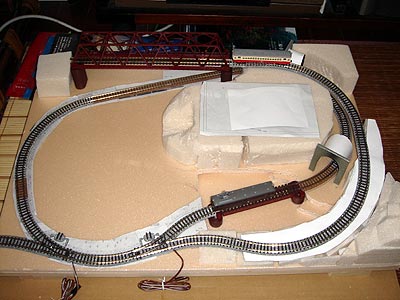 レールを仮置きして山岳部分の土台を徐々に造っていってます。なんとなく全容が見えてきました。